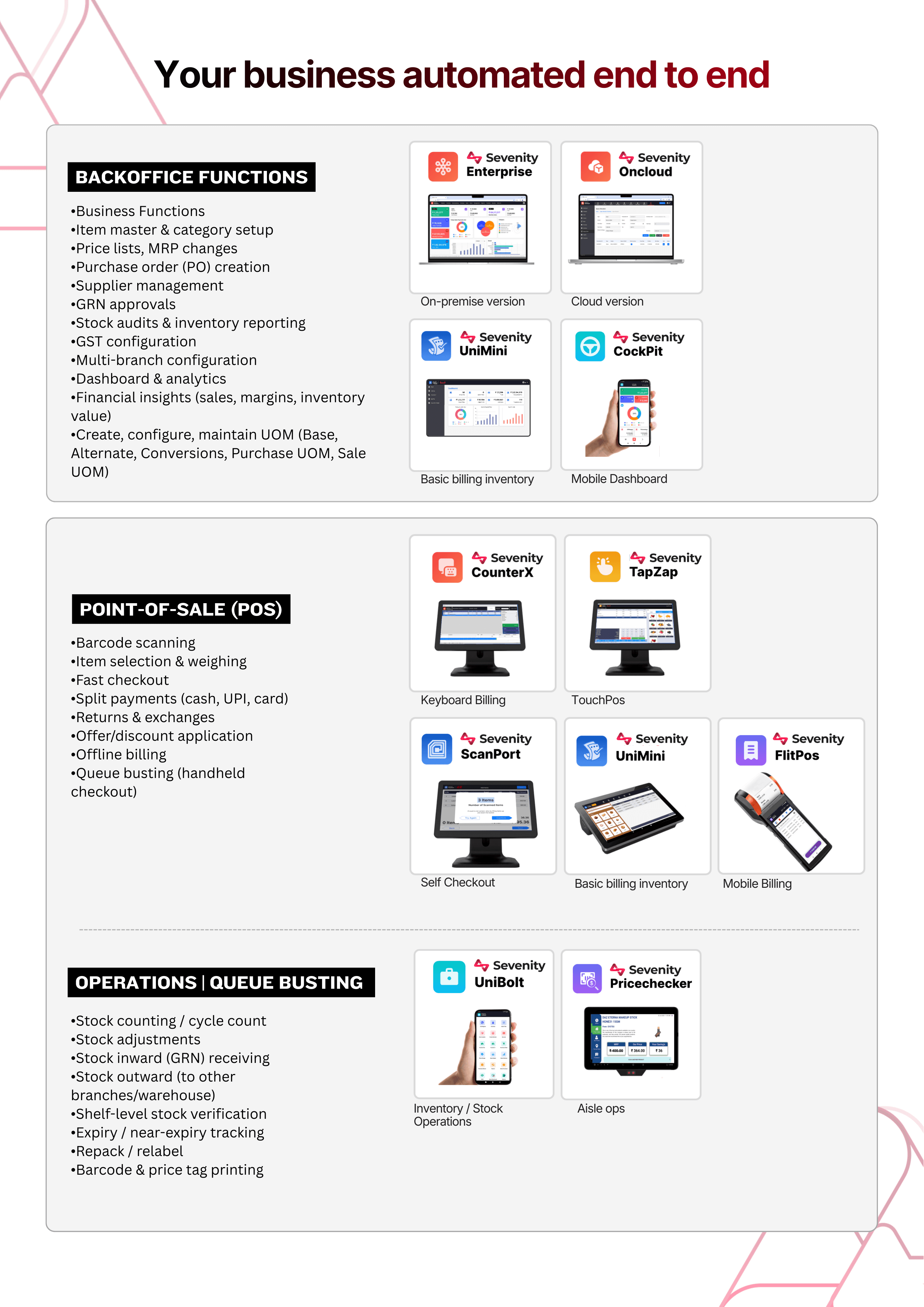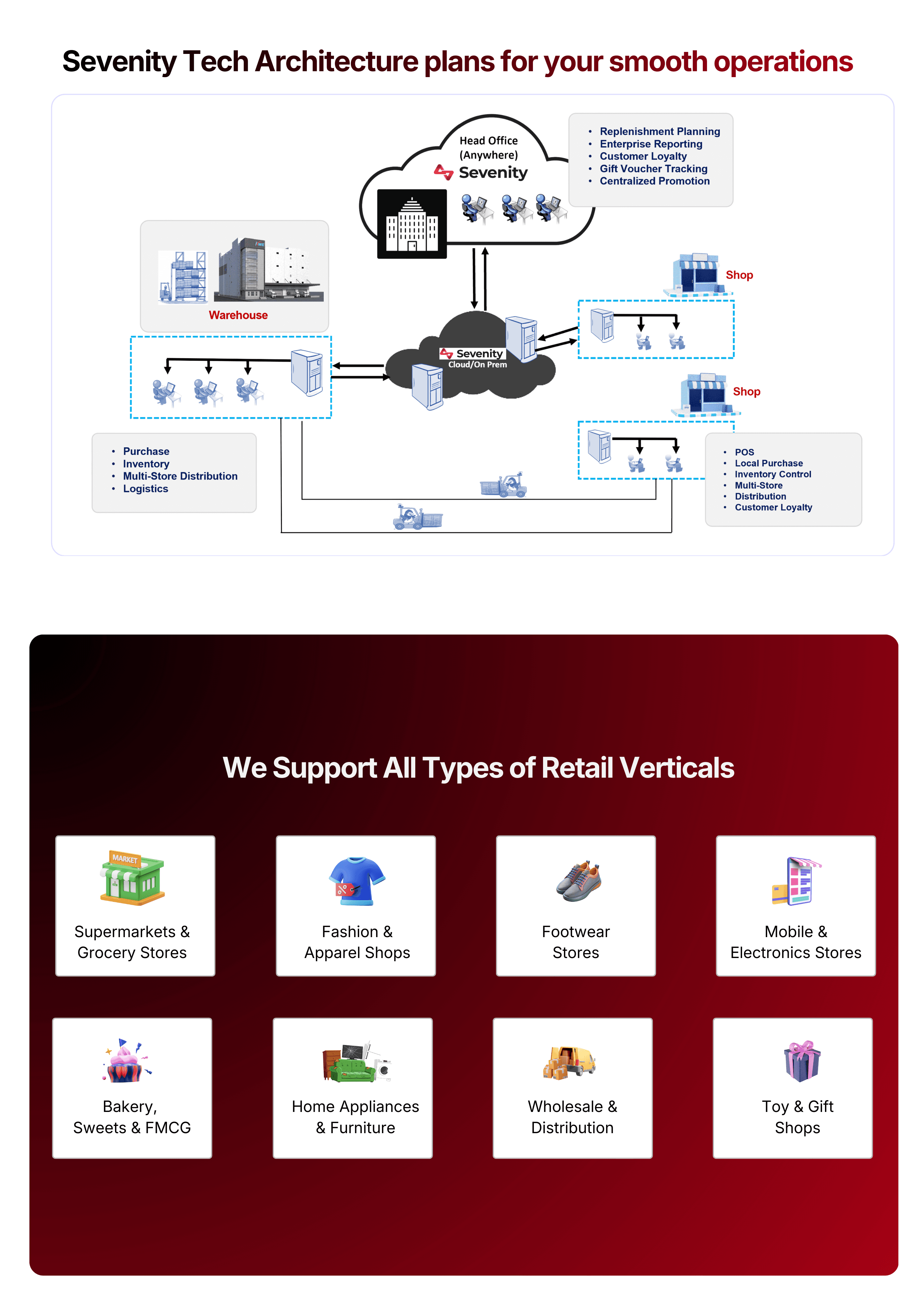 SevenityPOS is built for retailers managing multiple stores, warehouses, and high-volume inventory. With SevenityPOS, you can: